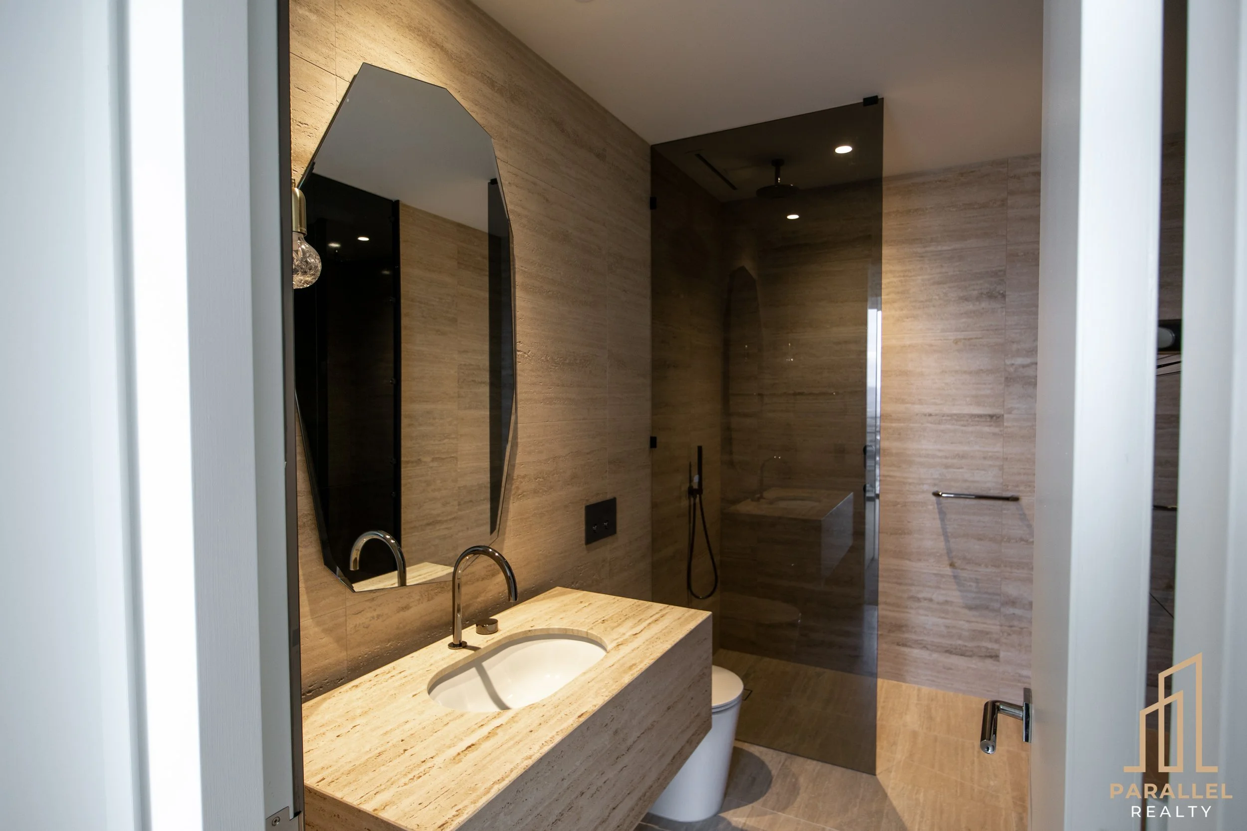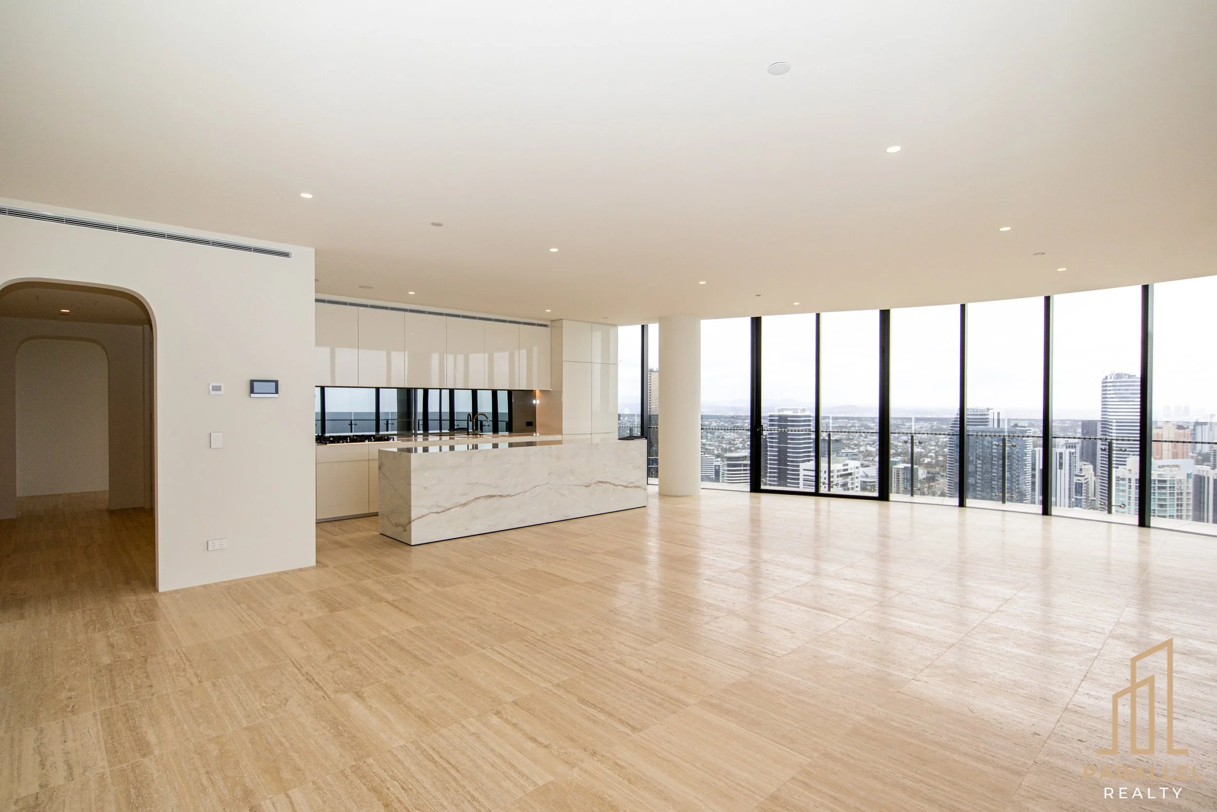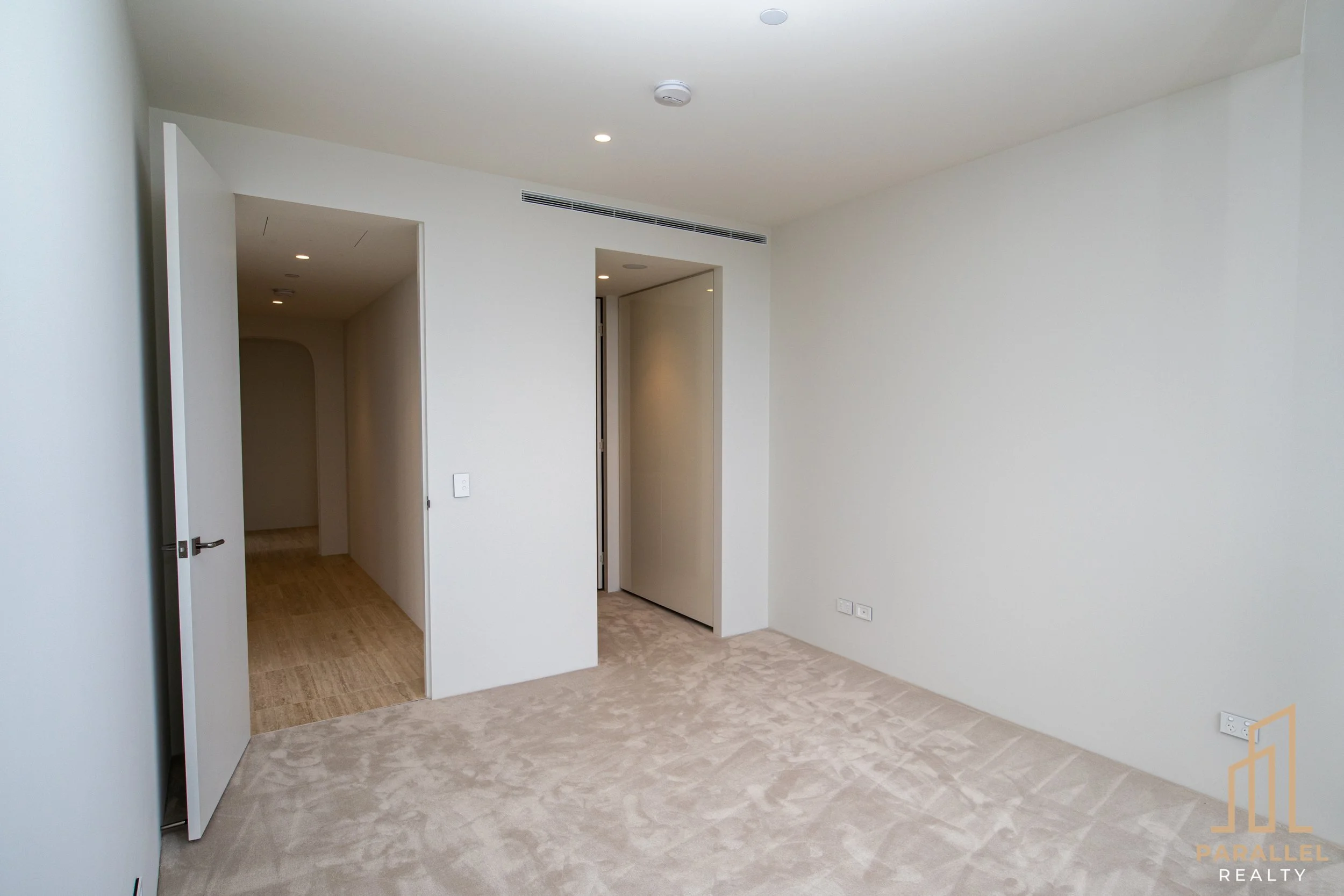This sophisticated sub-penthouse residence comes with three bedrooms and a multi purpose room, which encompasses an expansive 318 square meters on the entire north-facing facet of the 40th floor at 272 Hedges Avenue. Each bedroom has its own private en-suite, with the master bedroom featuring an expansive walk-in closet and a luxurious freestanding bathtub.