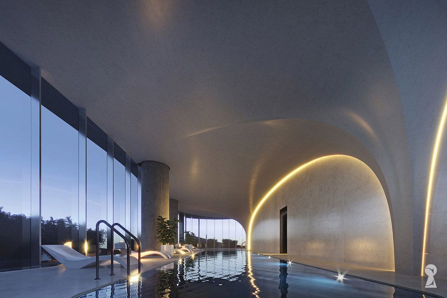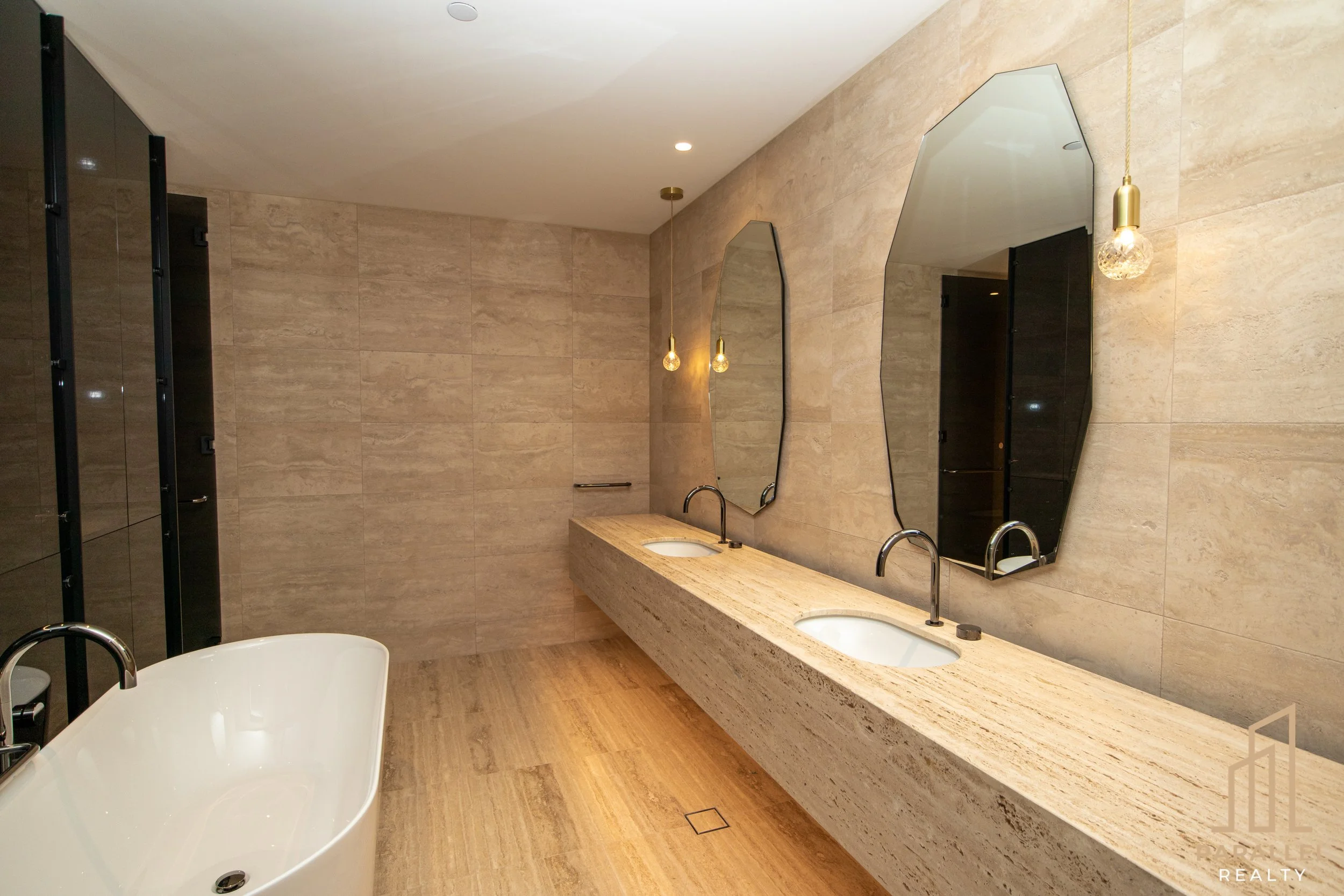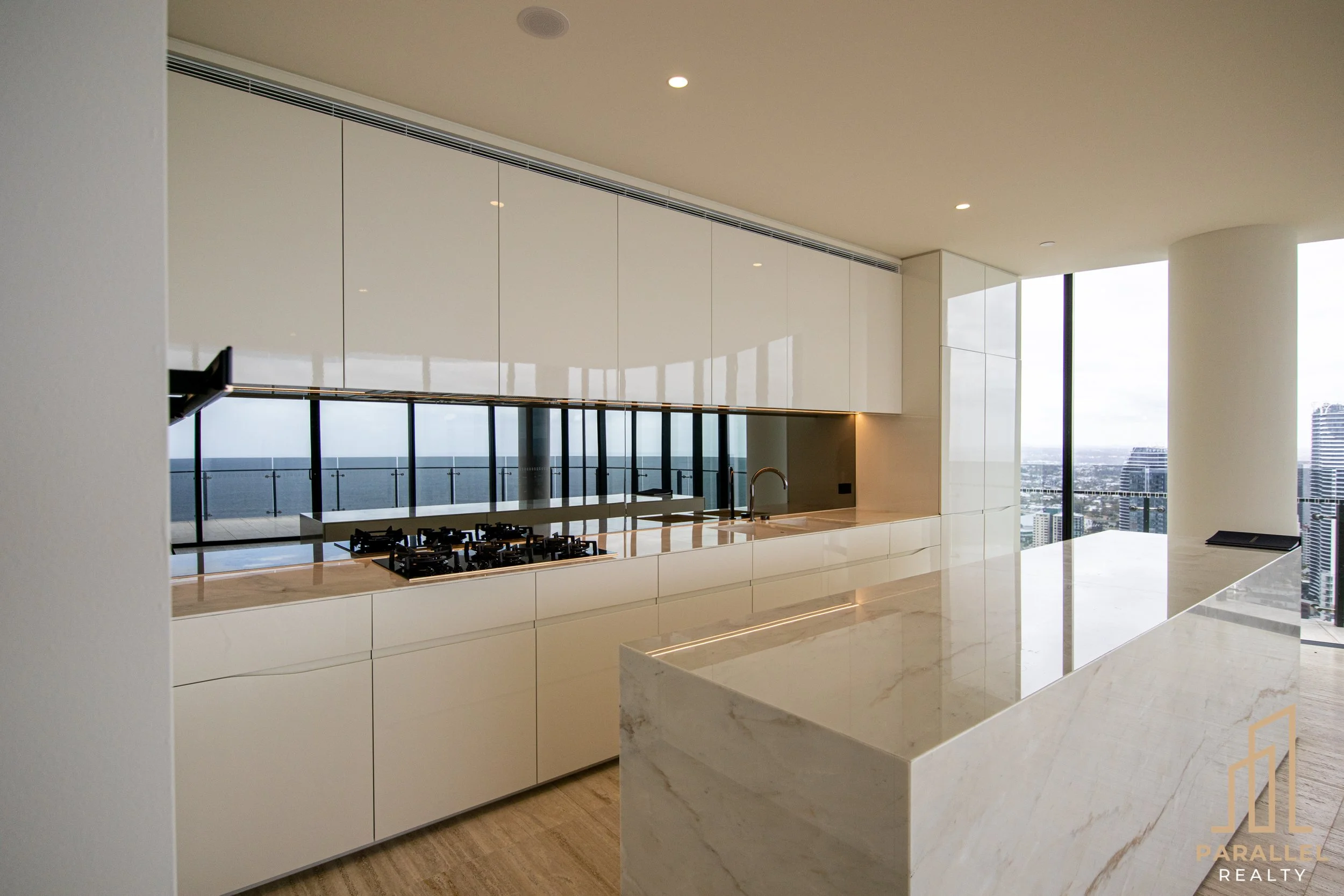 This sophisticated sub-penthouse residence comes with three bedrooms and a multi purpose room, which encompasses an expansive 318 square meters on the entire north-facing facet of the 40th floor at 272 Hedges Avenue. Each bedroom has its own private en-suite, with the master bedroom featuring an expansive walk-in closet and a luxurious freestanding bathtub.